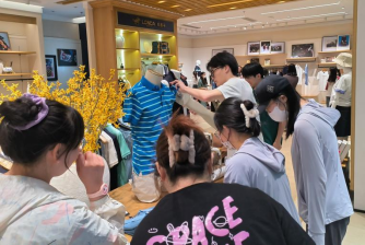 在企业有关人员的陪同下,同学们首先参观了公司的品牌楼。随后,大家来到伦德马(Londa)品牌的陈列区,观看了爵派尔服饰有限公司及伦德马品牌的宣传片,培训部刘洋经理对公司及伦德马品牌的发展历史进行了简要介绍。接着,陈列部培训师柴亚飞为同学们现场授课,从服装陈列的意义、具体方法及操作要领等方面为同学们进行详细的讲解,并通过大量具体的案例进行分析。同学们还以分组的形式在展厅现场实操。培训师对每组同学的作品进行现场点评,指出存在的问题和有待提高的地方。