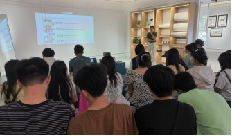 2023年5月30日上午,服装设计与工程专业201、202班40名同学在张喜景、李满宇两位老师的带领下,赴浙江爵派尔服饰有限公司开展《服装陈列》课程的现场教学活动。
