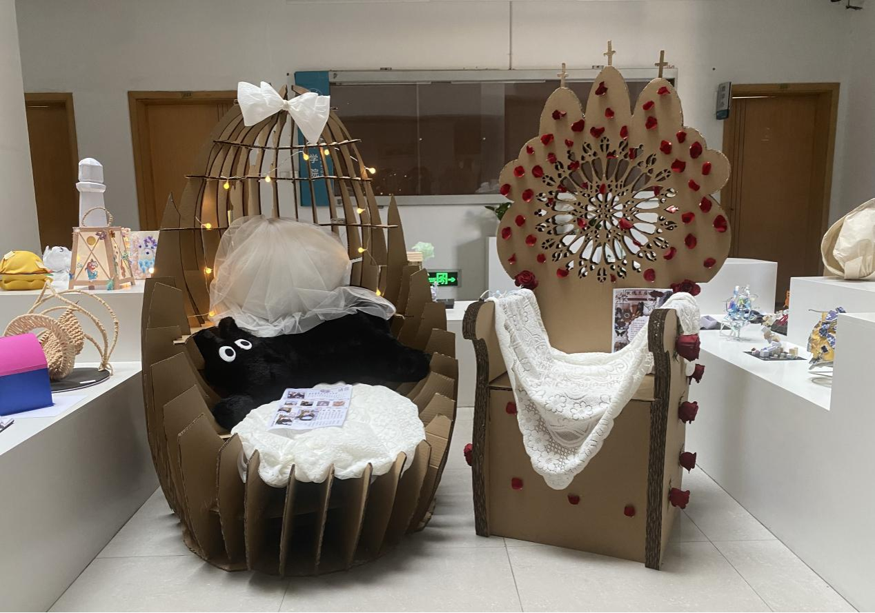 《立体构成》是工业设计专业重要的基础课,主要目的在于培养学生的形态构成的塑造能力。课程在教学过程中聚焦形态构成、形式美感的培养,尤其是在大作业的设计中,兼顾形式美感和功能创新,搭建从形态设计到功能设计的过渡实践。今年的大作业延续了“坐”的主题,设限以瓦楞纸材为主要材料。同学们发挥想象,最终的作品呈现出活跃的思维,多元的创意,达到了兼顾理念、形式与功能的要求。
