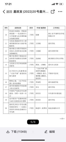 学院三项成果获嘉兴市第二十七届哲学社会科学优秀成果奖