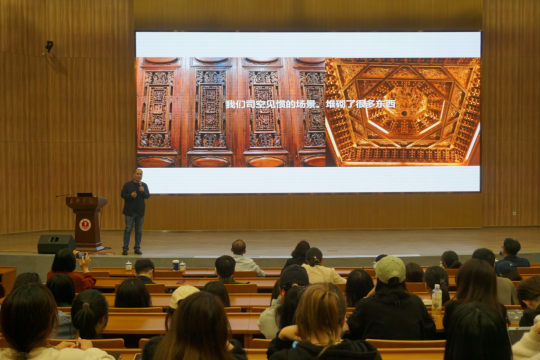 张月以《技术驱动的设计创新》为主题,从互联网技术、虚拟现实技术、VR、AR、参数化设计等技术驱动下出发,对当代空间设计如何创新提出宝贵的建议和对策。他指出,技术迭代下人们对空间或建筑从观念、理念、形式和审美等方面均发生了很大的变化,今后建筑空间、室内设计何去何从的问题,有待设计师重新定义和思考。学术报告结束后,张月教授还就技术驱动的设计创新与参会师生进行交流和互动。