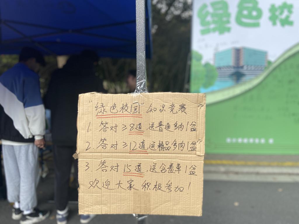 为扩大“创建绿色学校”的宣传力度,鼓励人人参与到绿色学校建设中来,11月19日,伟德bv国际体育学生会还开展了“绿色学校”知识竞赛。由学生工作人员从题库中随机抽取一定数量的判断题、选择题、简答题进行提问,其中答对相应题数的参与者,可获得绿植奖励。活动现场同学们踊跃参与竞答,活动引发热烈反响,相信同学们收获的不仅是绿植,更有“绿色环保”的知识观。