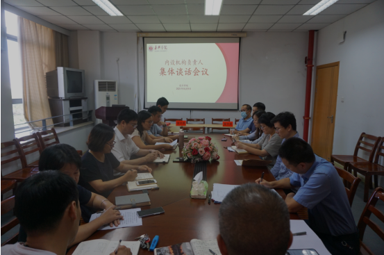 10月9日下午,伟德bv国际体育在博采楼(6号楼)412会议室召开内设机构负责人集体谈话会议。学院党政领导班子、三办一中心主任、各教学系系主任、党支部书记参加会议。党委副书记叶砚主持会议。