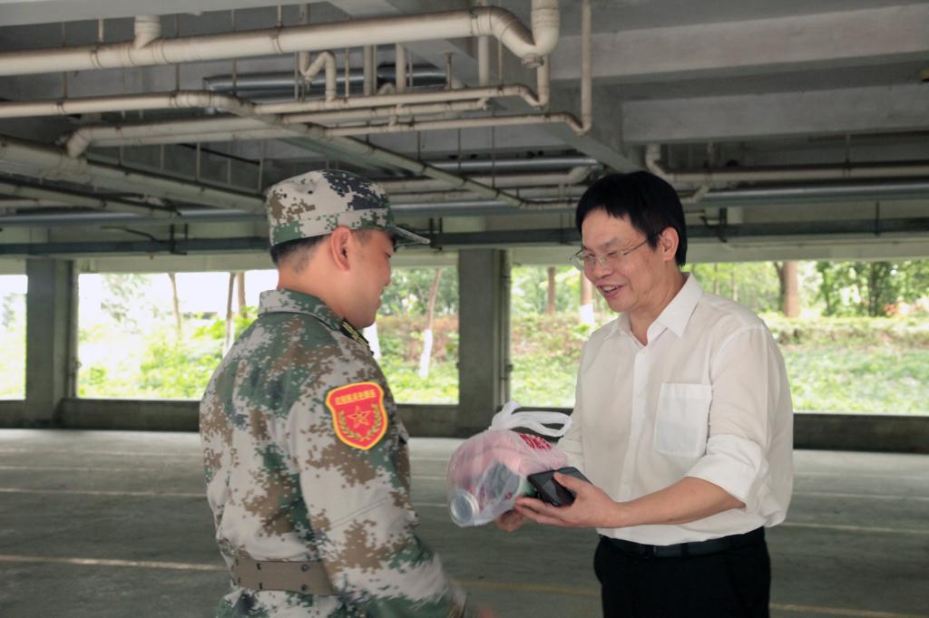 韦浩院长首先代表学院党政班子对教官们的辛勤付出表示衷心感谢,并为教官们送上了慰问品。范有军连长代表教官团队感谢学院的关怀,他表示教官团队将按照学校的统一安排和部署,克服困难、团结协作,争取圆满完成承担的军训任务。随后,韦浩院长和黄芳芳书记还亲切慰问了参训学生和观训见习学生。
