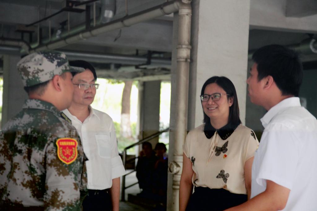 7月7日下午3点,伟德bv国际体育院长韦浩、党委书记黄芳芳、党委副书记叶砚和辅导员老师来到梁林校区公寓3楼旁的学院军训场地,亲切慰问承训教官和受训学生,并了解军训工作开展情况。