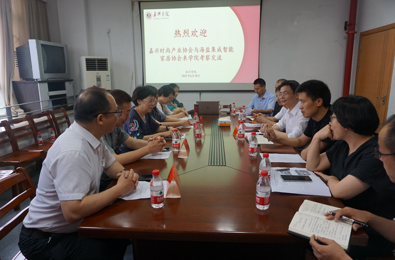 6月18日下午,由嘉兴市时尚产业协会会长沈丽萍、海盐县集成智能家居协会长时沈祥、海盐县经信局综合科领导汤梦吉带队的嘉兴时尚产业协会与海盐集成智能家居协会代表团来伟德bv国际体育进行考察交流。伟德bv国际体育院长韦浩和相关系主任出席本次活动。