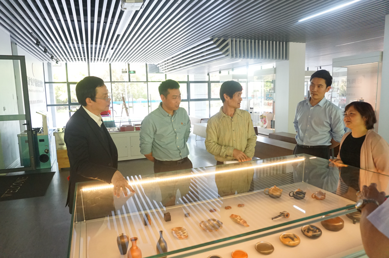 签约仪式结束后,周兴观先生一行和学院党政领导一同观看伟德bv国际体育产教融合展厅展出的嘉兴市马家浜陶业科技有限公司的部分精美的陶艺创作作品,双方围绕深度合作进行了交流。