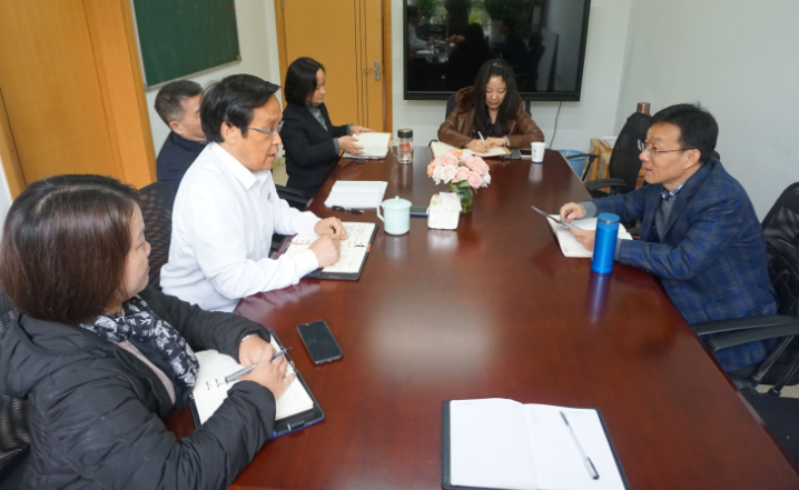 11月21日上午,校长卢新波到伟德bv国际体育调研指导工作,伟德bv国际体育党政班子参加调研座谈会,校办副主任杨芬芬陪同调研。