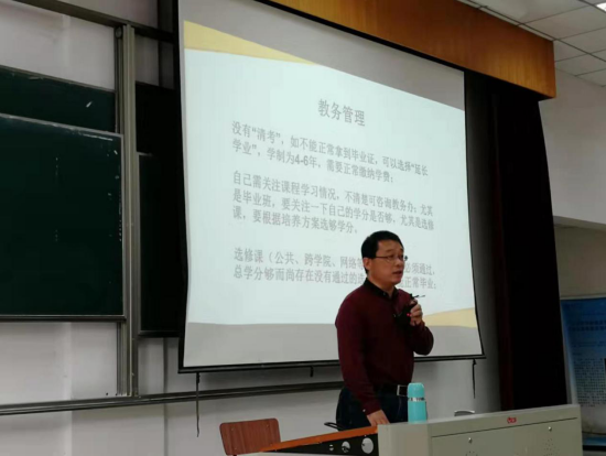 2019年11月6日中午12:20,伟德bv国际体育在七号楼报告厅开展了第二十七季“书记漫谈ING”活动,学习管理制度、开展安全教育。院党委书记张杰、副书记薛峰分别宣讲,学院辅导员贾白帆、颜姚炜、各班班长团支书以及全体学生党员参加会议,会议由贾白帆主持。