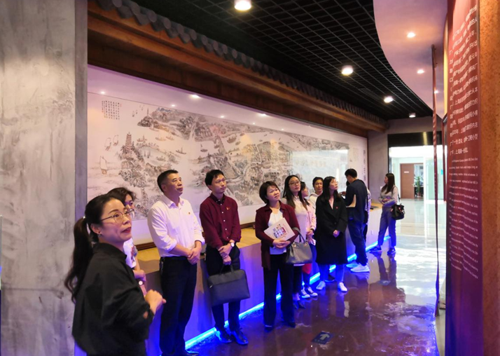 调研会后,张书记一行参观了毛衫市场党建长廊、毛衫文化博物馆、网红直播中心,并观看了洪合毛衫发展宣传片,通过大量详实、丰富、珍贵的历史照片、图表和文献资料、流传下来的实物再现了洪合毛衫产业发展的“蝶变”之路。此次交流考察,为学院党建工作和人才培养提供了新的启示和思路。(撰稿:徐琳燕,审核:张杰)