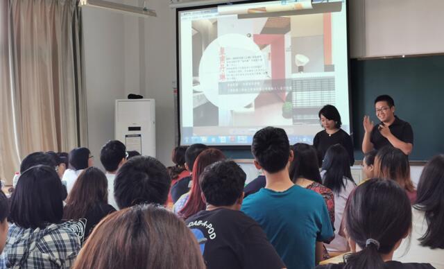 在课堂上,皇甫丹琳与金国平分别对自己设计团队的设计作品进行介绍,其后对出题项目进行有条例的解读,最后对同学们进行答疑。作为课程第一阶段,此次交流加深了同学们对项目设计行情的了解和认识,促进了对专业设计理念的提升,为做出更优秀的作品而不断努力。