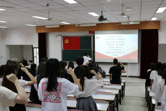 活动以短片为序,重点回顾了毕业生党员们四年里在政治理论学习、党员发展环节、社会实践服务等方面的经历与收获,并在颜姚炜老师的带领下,面向党旗重温入党誓词。