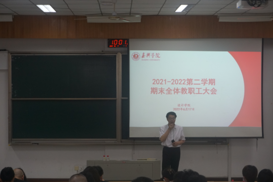 黄芳芳书记在总结讲话中指出,全体教职工要切实做好学期末各项收尾工作;要高度重视安全工作,严格落实疫情防控管理要求和值班制度;要抓好假期学习,利用暑假开展教学研究,提升专业技能,为个人和学院的发展添砖加瓦。