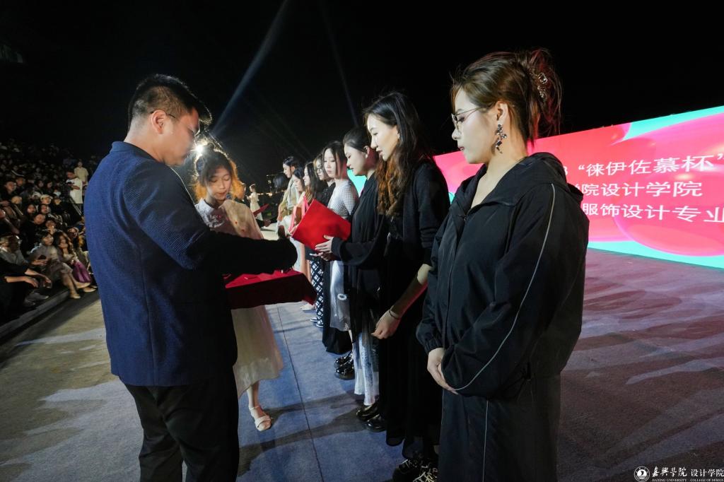 4月17日晚,嘉兴学院伟德bv国际体育 2023届毕业设计系列展演暨“徕伊佐慕”服装动态展演活动在嘉兴学院虹源湖畔华丽上演。一组组独具匠心、时尚靓丽的服装作品闪亮T台,点燃了青春激情,为现场的观众们奉献了一场大气唯美的服装视觉盛宴。嘉兴学院党委副书记钱方明、广州徕伊佐慕服饰有限责任公司董事长何成啸、兄弟院校教师代表、嘉兴市河南商会领导、学校相关职能部门和二级学院领导出席并全程观看了展演活动。
