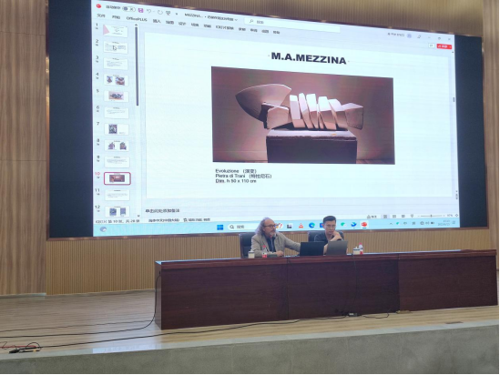 梅齐纳教授首先通过多媒体方式介绍了巴里美术学院的基本概况、专业设置、人才培养等情况。随后,他重点介绍了学院师生的代表性艺术作品,并一一详细解读。最后,梅齐纳教授还与现场的师生进行了互动。