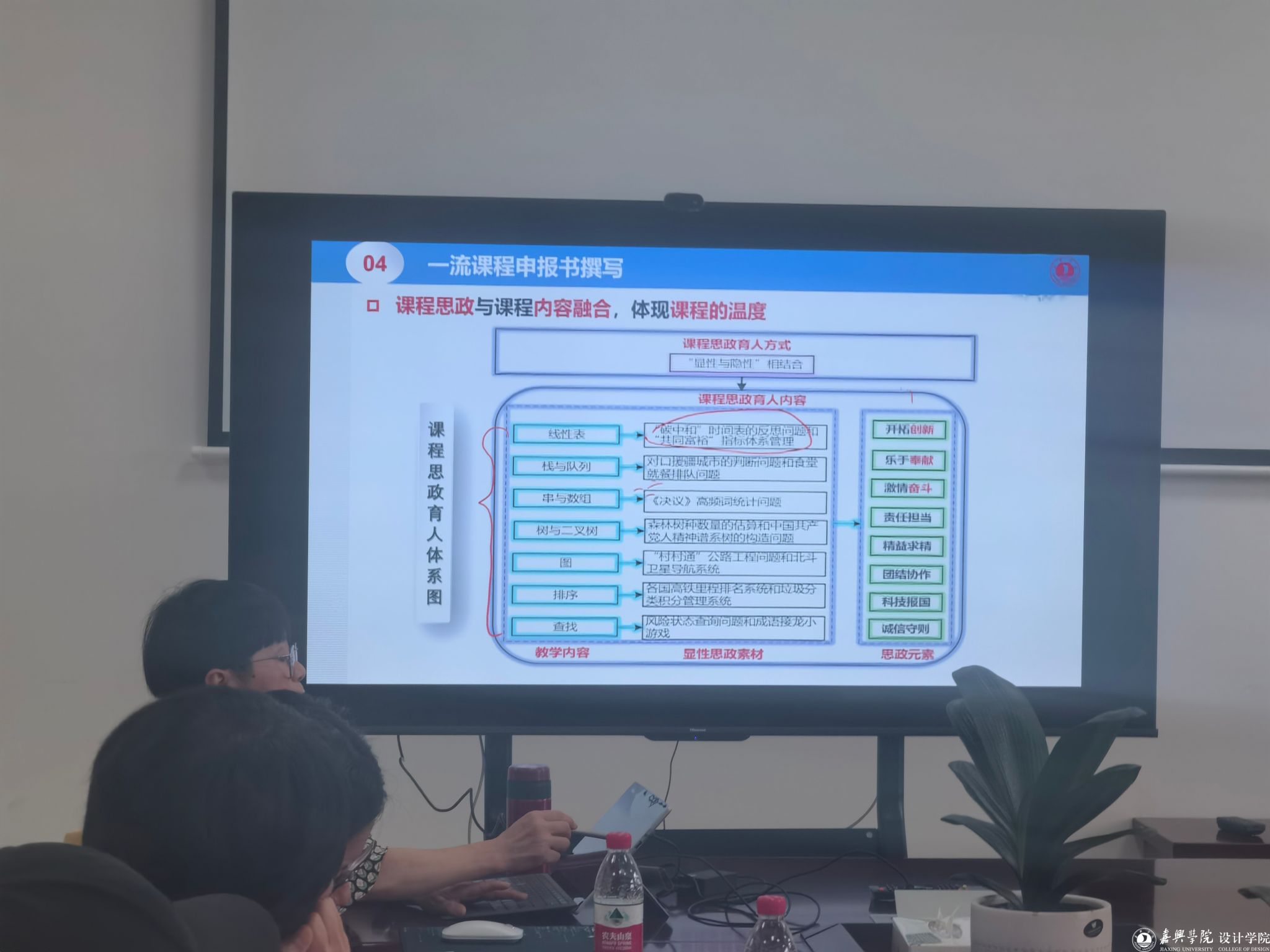 她认为,要深入挖掘各类课程和教学方式中蕴含的思想政治教育元素,课程思政要与课程内容融合,体现课程的温度,从而建设适应新时代要求的一流本科课程;要从“两性一度”等基本原则出发,结合布鲁姆认知目标模型、目标设定的SMART原则等,对线上线下混合式教学进行有效设定;她还从课程目标、授课教师、课程内容、教学改革、教学评价、改革成效等6大一级指标详细介绍了混合式课程的评审标准。在介绍一流课程申报书撰写时,她重点分享了“课程建设及应用情况”的心得,并结合经典案例展开陈述。