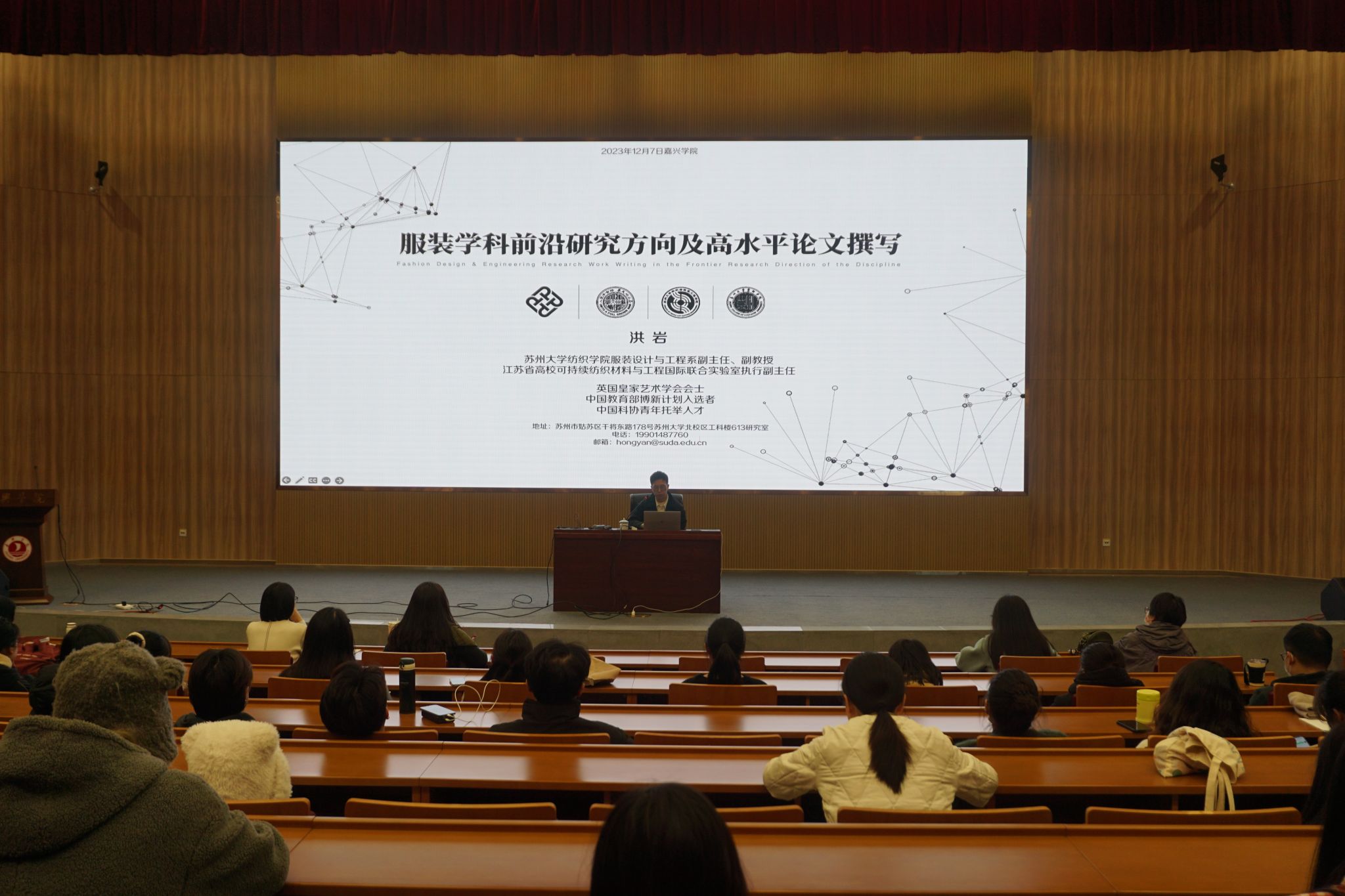 本次讲座以《服装学科前沿研究方向及高水平论文撰写》为主题,洪老师以服装产业现状切入,提出基于感性认知的人工智能设计的研究理论和方法,形成面向服装产业全链条的可持续发展研究体系。洪老师对撰写科研论文的前提、论文的正确书写及SCI&SSCI论文撰写技巧等方面进行详尽讲解,以作为责编的经验之谈为广大师生撰写论文及前沿研究方向提供思路。