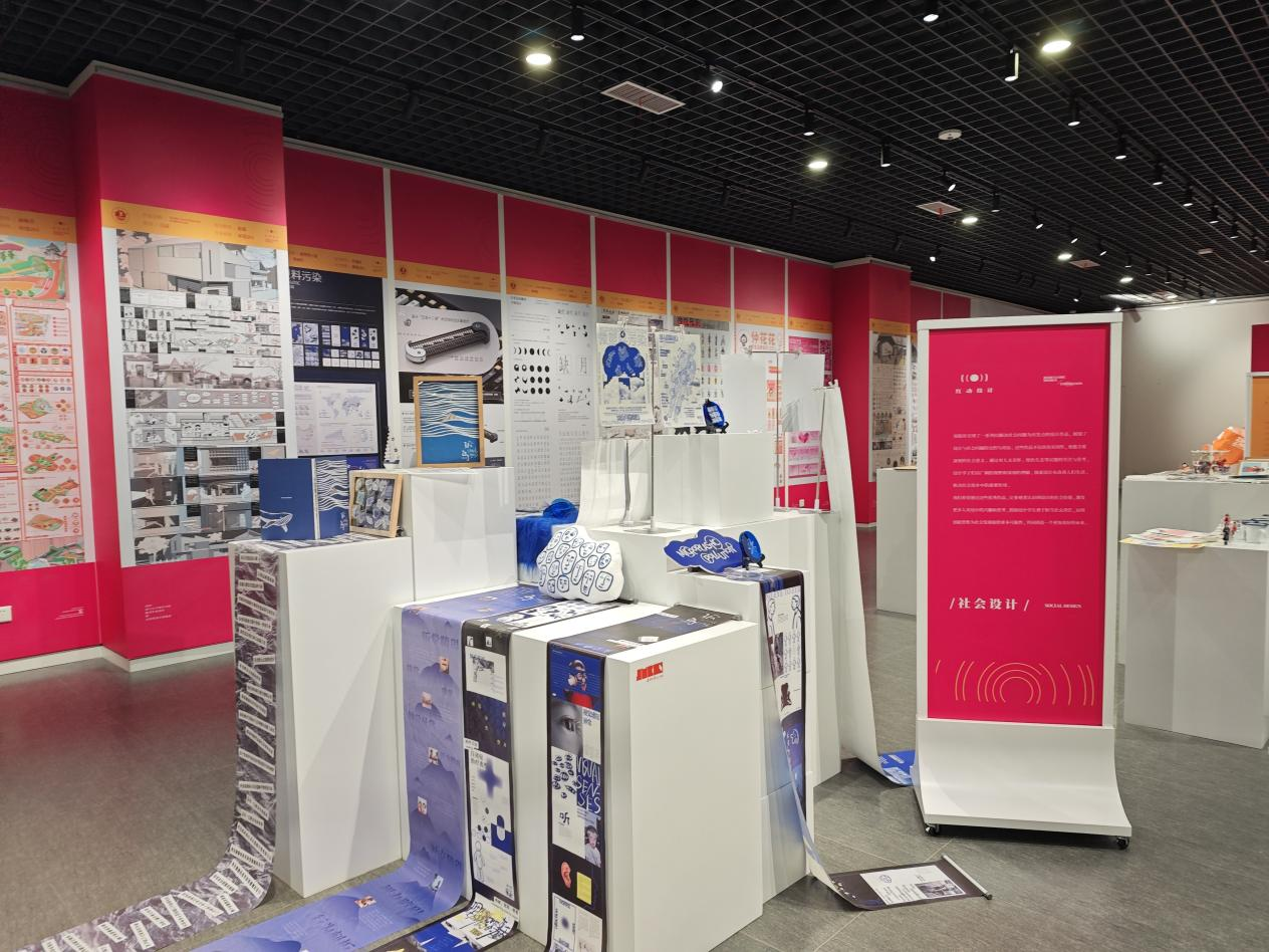 本次展览以“红动设计”为主题,分为“文化传承”、“社会设计”、“时尚创意”、“产教融合”四个模块。其中“文化传承”模块展示了师生们如何将中华优秀传统文化元素融入现代设计理念,创作出兼具传统魅力与现代气息的作品。“社会设计”模块则聚焦社会热点问题,运用设计思维提供创新解决方案,体现设计的社会责任与价值。“时尚创意”模块汇集了师生在时尚设计前沿的探索与成果,展现了伟德bv国际体育紧跟时代脉搏、引领潮流风尚的创新实力。“产教融合”模块则重点展示了伟德bv国际体育与行业、企业深度合作的成果,体现了设计教育与产业需求的紧密结合,促进了设计成果的转化与应用。