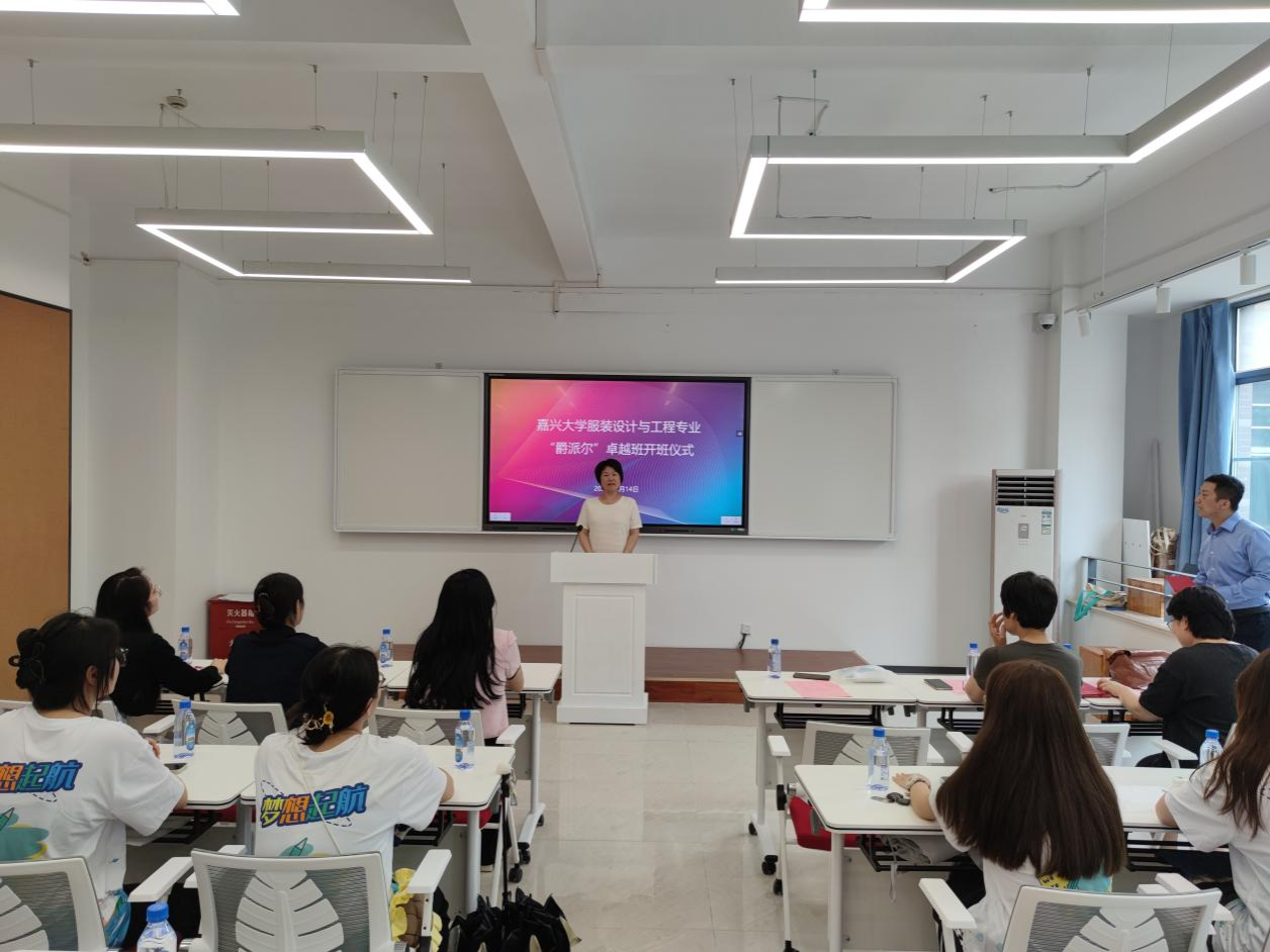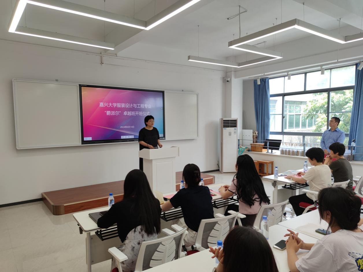 仪式伊始,伟德bv国际体育裘玉英副院长介绍了卓越工程师教育培养计划(卓越计划)的基本情况。她指出,“卓越计划”是教育部贯彻落实的重大改革项目,旨在培养造就一大批创新能力强、适应经济社会发展需要的高质量技术人才,对全面提高人才培养质量具有重要的示范和引导作用。她强调,嘉兴是全国闻名的毛衫重镇,伟德bv国际体育在与地方毛衫产业产教深度融合方面大有可为。本次卓越班的开班正是校企合作结出的硕果。裘院长代表伟德bv国际体育感谢浙江爵派尔科技发展有限公司的大力支持,希望学生们能在卓越班学有所成。