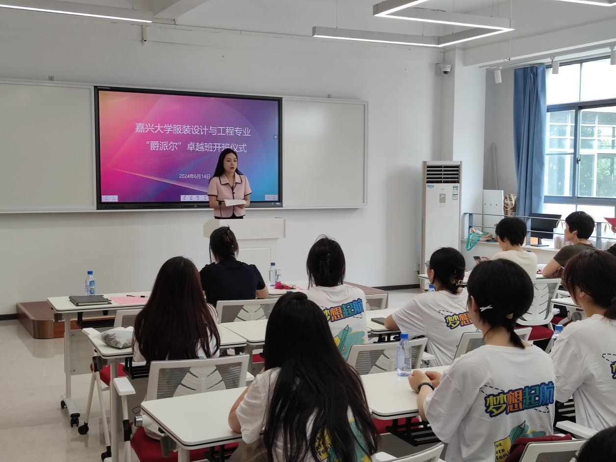 6月14日上午10点,伟德bv国际体育在博闻楼208未来学习空间举行服装设计与工程专业“爵派尔”卓越班开班仪式。伟德bv国际体育副院长裘玉英、服装设计与工程专业系主任李燕、卓越班班主任王花娥;浙江爵派尔科技发展有限公司总裁办主任刘婷婷、行政部经理赵怡佳、人事主管张梦圆共同出席仪式,卓越班19名学生参加仪式。仪式由伟德bv国际体育教务办主任贾白帆主持。