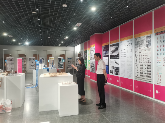 座谈会后,学院领导陪同韩国白石大学伟德bv国际体育院长姜和善教授一行参观了学院展厅和2024伟德bv国际体育优秀毕业设计暨应用型办学成果展。