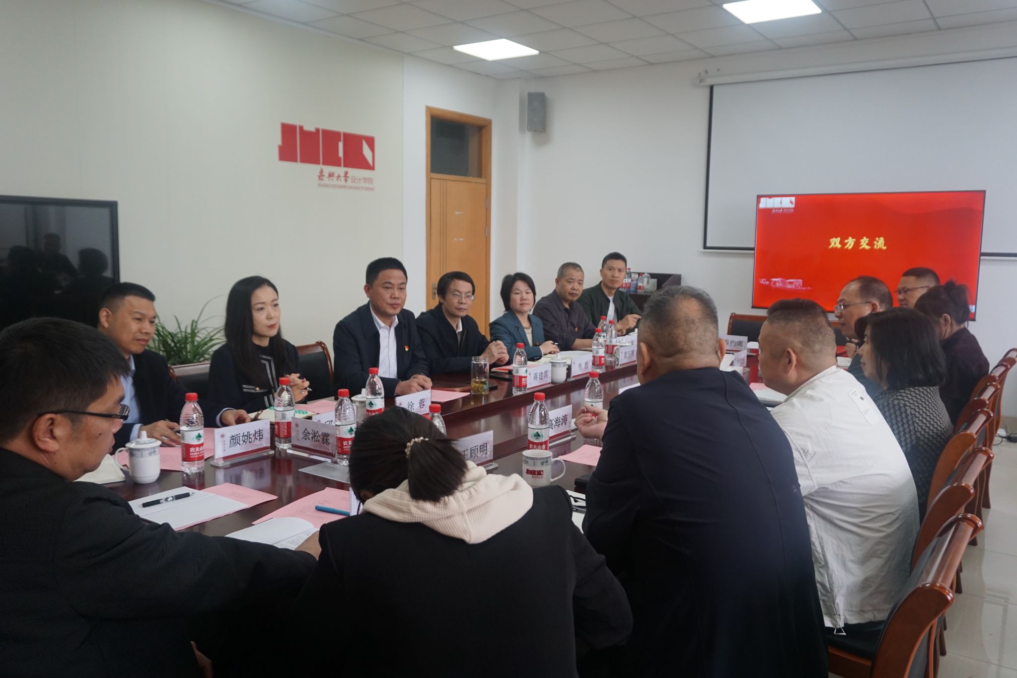 签约仪式和座谈会后,双方代表在学院楼下合影留念。与会人员一同参观了学院时尚产业产教融合基地和嘉兴大学红船精神育人展示馆。