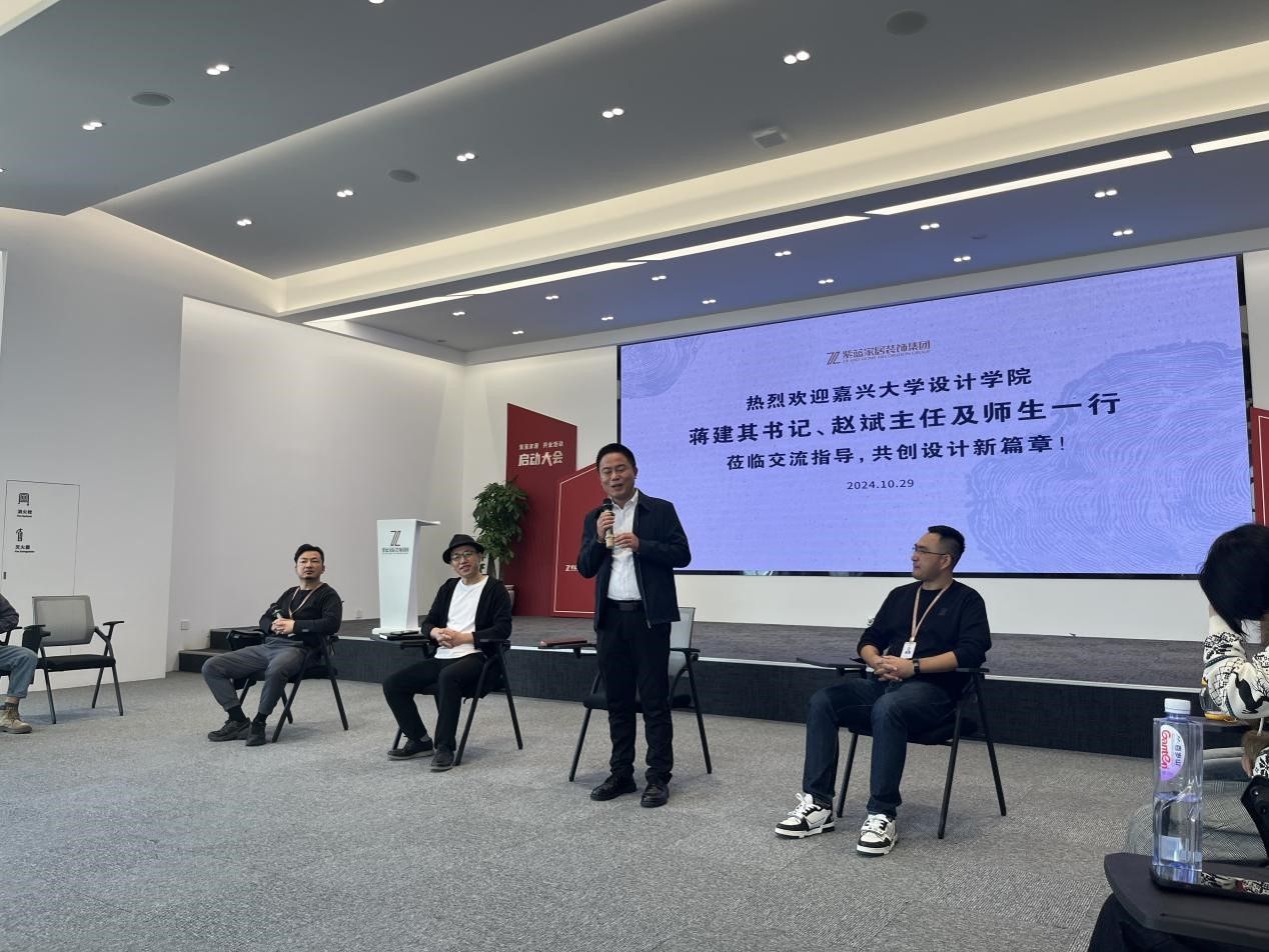 浙江紫蓝家居装饰集团有限公司总裁褚林峰向师生们详细介绍了集团的企业文化、展厅建筑设计理念、空间设计及家居装修设计的各个板块,并分享了关于产教融合实践教学的后续构想和合作方向,为此次研讨打开了思路。