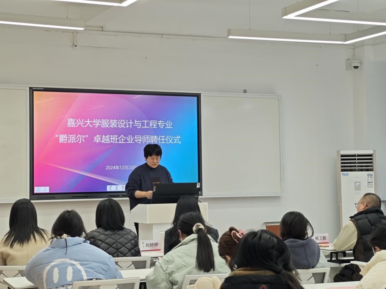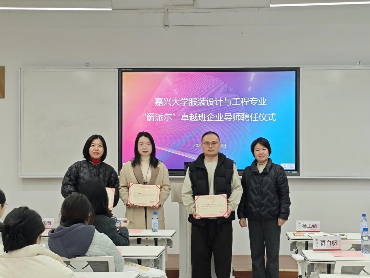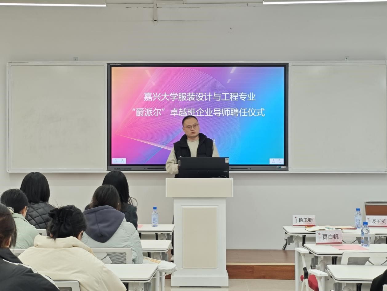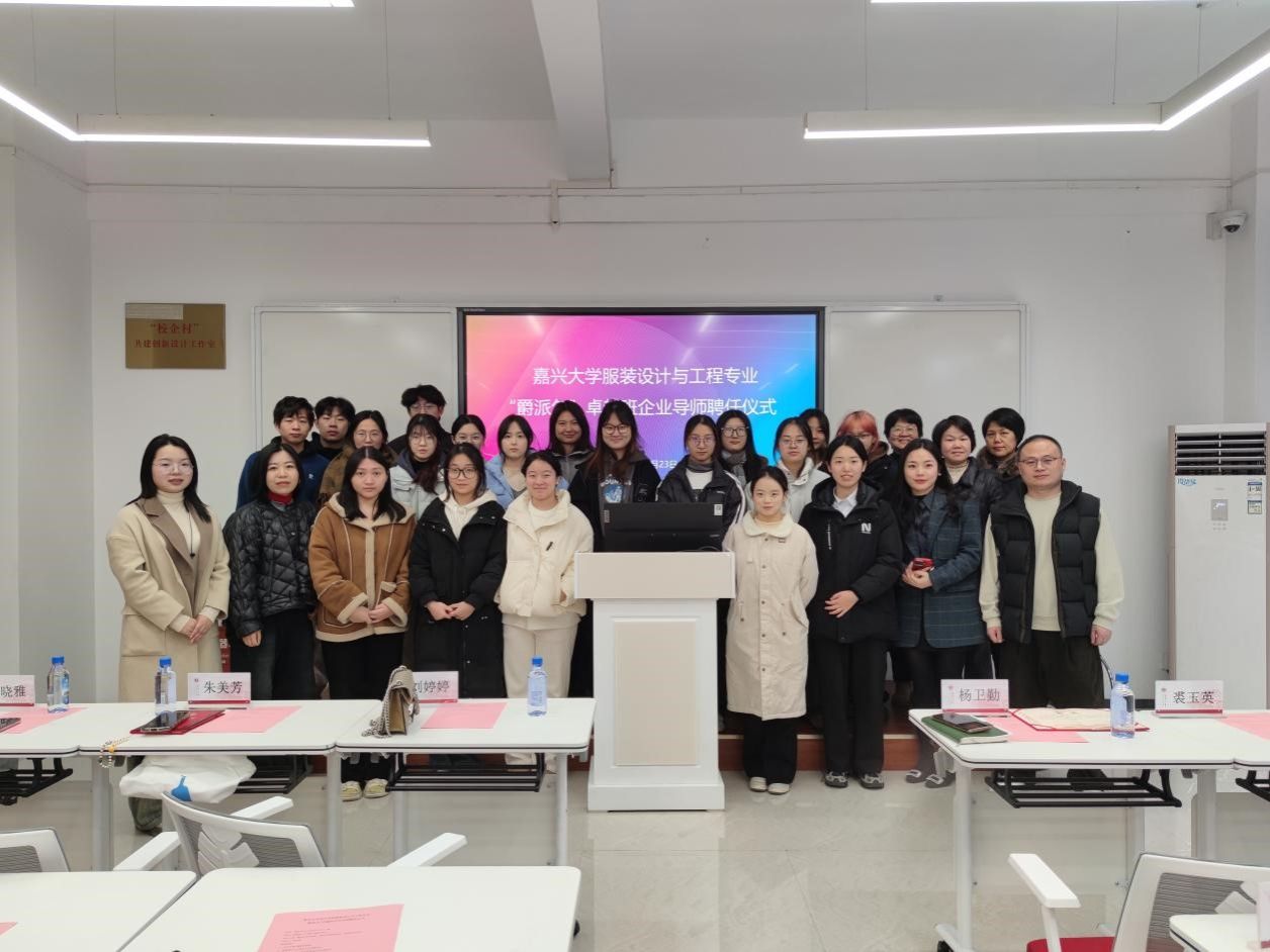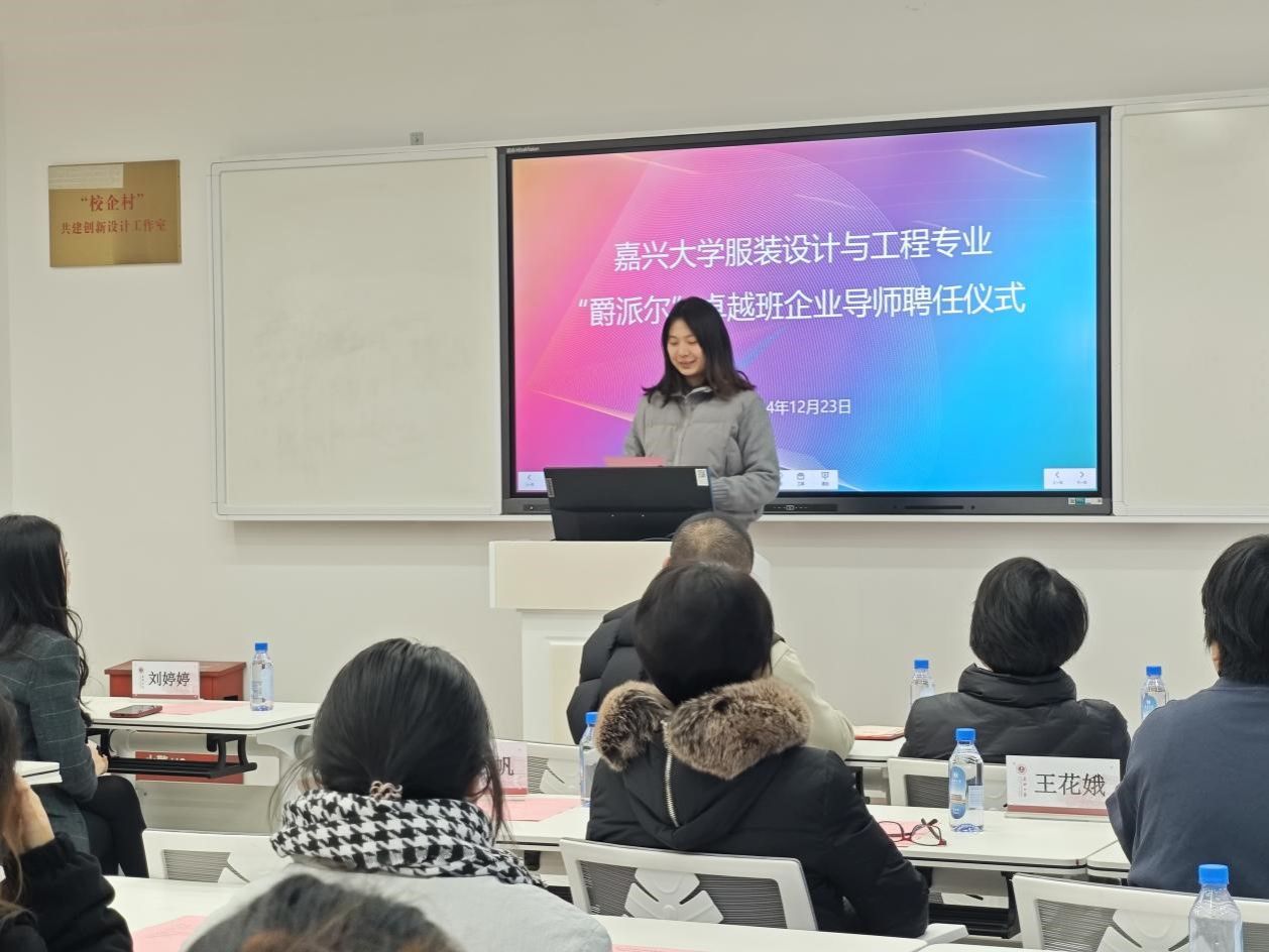 12月23日下午3点30分,伟德bv国际体育在博闻楼208未来学习空间举行服装设计与工程专业“爵派尔”卓越班企业导师聘任仪式。伟德bv国际体育副院长裘玉英、服装设计与工程专业系主任李燕、卓越班班主任王花娥、浙江爵派尔服饰有限公司和浙江爵派尔科技发展有限公司总裁办主任刘婷婷、设计总监杨卫勤、技术总监朱美华、主设计师吴晓雅,卓越班19名学生参加仪式。仪式由伟德bv国际体育教务办主任贾白帆主持。