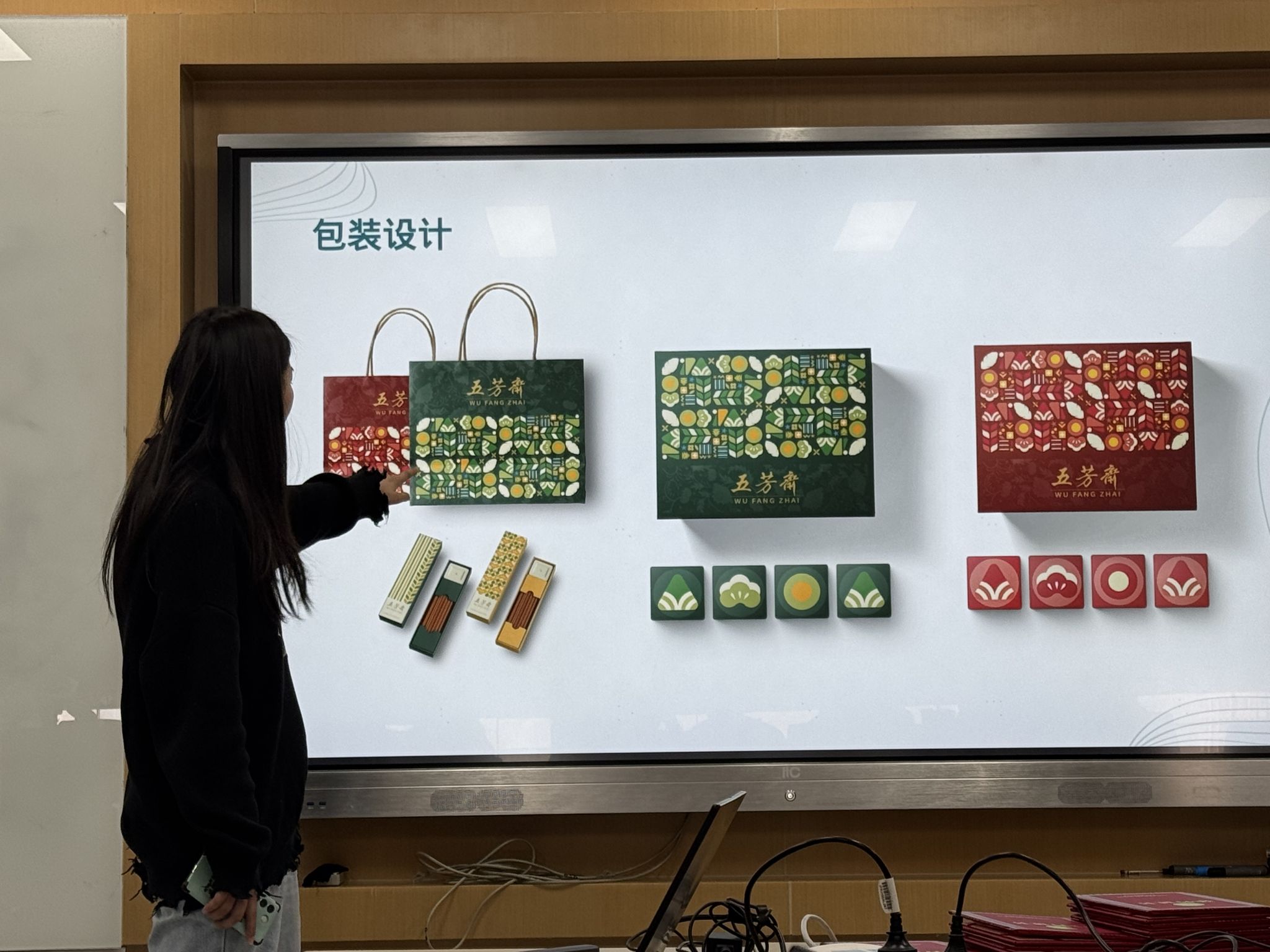本次工作坊为视觉211、212班级同学在学院周琳老师指导下,深入了解了五芳斋的国家级非物质文化传统技艺。学生们不仅学习了技艺的基本流程,参观浙江省传统工艺工作站-五芳斋非遗体验馆学习相关非遗文化,还通过现代设计理念对五芳斋非遗体验馆馆标、IP糯糯龙表情包及蛇年电子红包、非遗文创、传统产品进行了创新设计。同学们多次前往企业与非遗传承人、企业工作人员进行交流及实地考察,通过设计理念的再次加工,最终产生了一件件颇具创意的作品。在成果汇报会上,学生们展示了他们的设计作品,并进行了精彩的讲解。五芳斋的代表和相关专家对学生们的作品给予了高度评价,认为这些作品不仅具有很高的艺术价值,还具有很强的市场潜力,并评选出多项作品即将制作投入市场。此次工作坊不仅为学生们提供了一个展示自我、锻炼能力的平台,也为非遗文化的传承与发展注入了新的活力。学生们纷纷表示,通过这次工作坊的课程学习,他们对非遗文化有了更深刻的理解和认识,也更加坚定了传承和创新传统文化的决心。