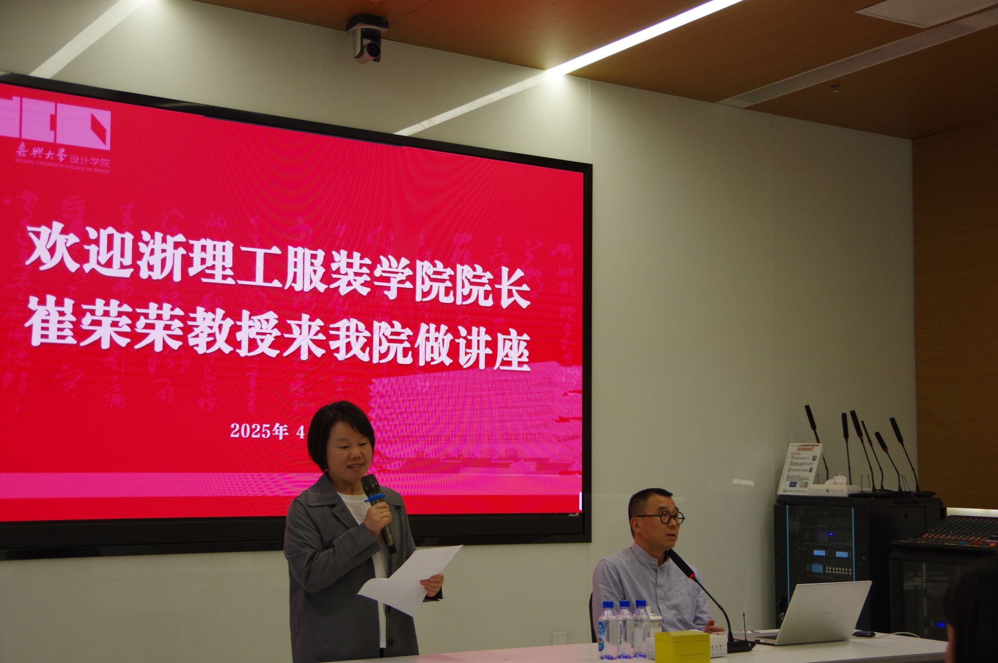 2025年4月15日下午,伟德bv国际体育邀请了浙江理工大学服装学院院长崔荣荣教授,在图书馆二楼会议室带来了一场精彩纷呈的专题讲座。报告以“中华服饰与衣文明构建”为主题,旨在探讨中华民族服饰艺术韵律、国潮文化时尚设计以及中华衣文明的构建。会议由我院教学院长裘玉英主持,现场吸引了众多师生前来聆听。