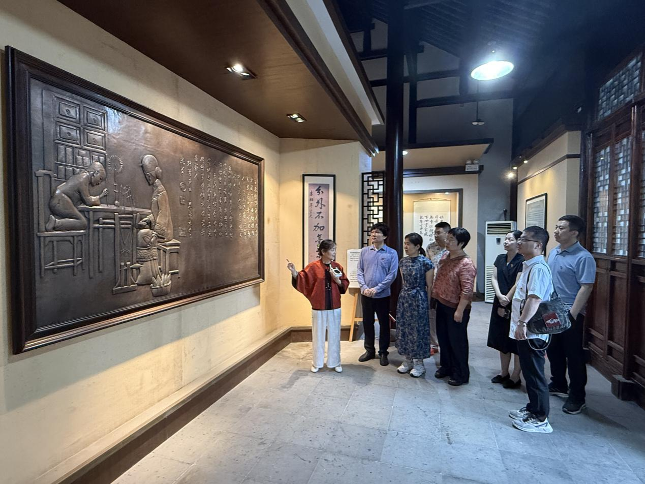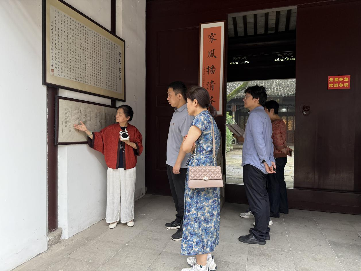在钱氏后人的带领下,党员们首先参观了嘉兴清代名臣钱陈群故居——清芬堂,共同回顾了钱氏家族“不谋一家,为国为家”的家国情怀与修身准则,党员们通过齐声诵读《钱氏家训》,沉浸式感悟这一国家级家训非遗文化所蕴含的精神力量。随后党员们又来到褚辅成史料陈列室,在讲解员的导览下,聆听了褚辅成为爱国、报国、强国而鞠躬尽瘁的感人事迹。