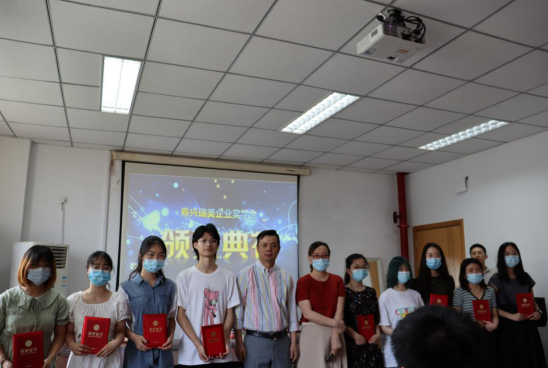 6月18日上午9:00,伟德bv国际体育2020年瑞美企业奖学金颁奖典礼在梁林校区6号楼412会议室顺利举行。学院裘玉英副院长、服饰系副主任刘艳梅老师、学工办凡欣主任及有关企业领导出席典礼为18名获奖学生代表授奖。典礼由学工办贾白帆主持。